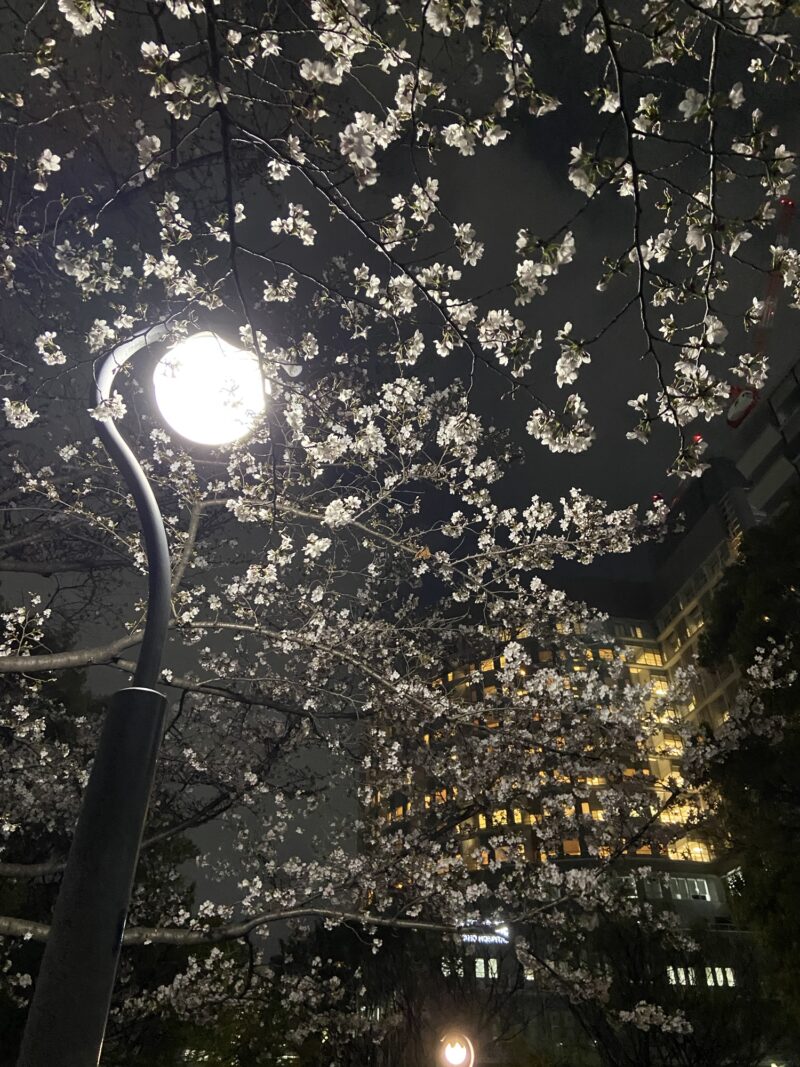 まだ三分咲きくらいでしたが、街灯に照らされた桜がすごく綺麗で、ふわっと浮かび上がる感じがなんともいい雰囲気でした😁